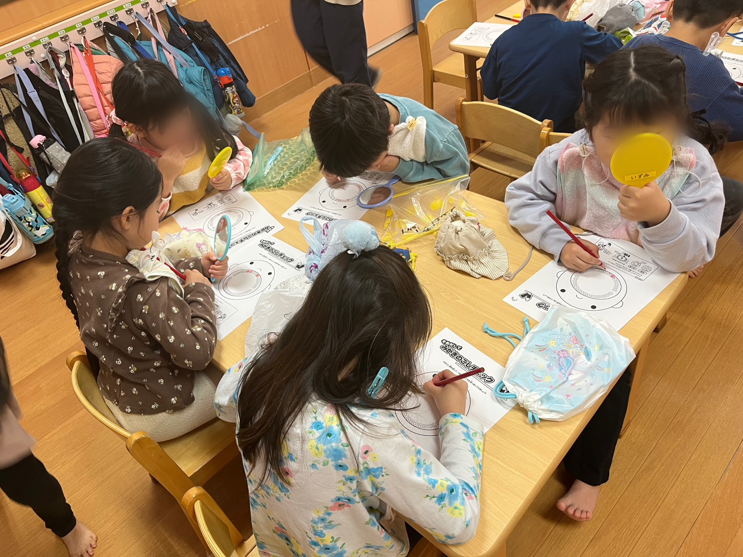 12月にいずみ東白楽保育園といずみ反町公園保育園に歯科検診と保健指導に行ってきました。3、4歳児クラスには「あいうべ体操と姿勢・お鼻での呼吸の練習」を行い、5歳児クラスには赤染めでの磨き残しのチェックを行いました。