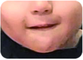 口を閉じた時にオトガイ部にしわ