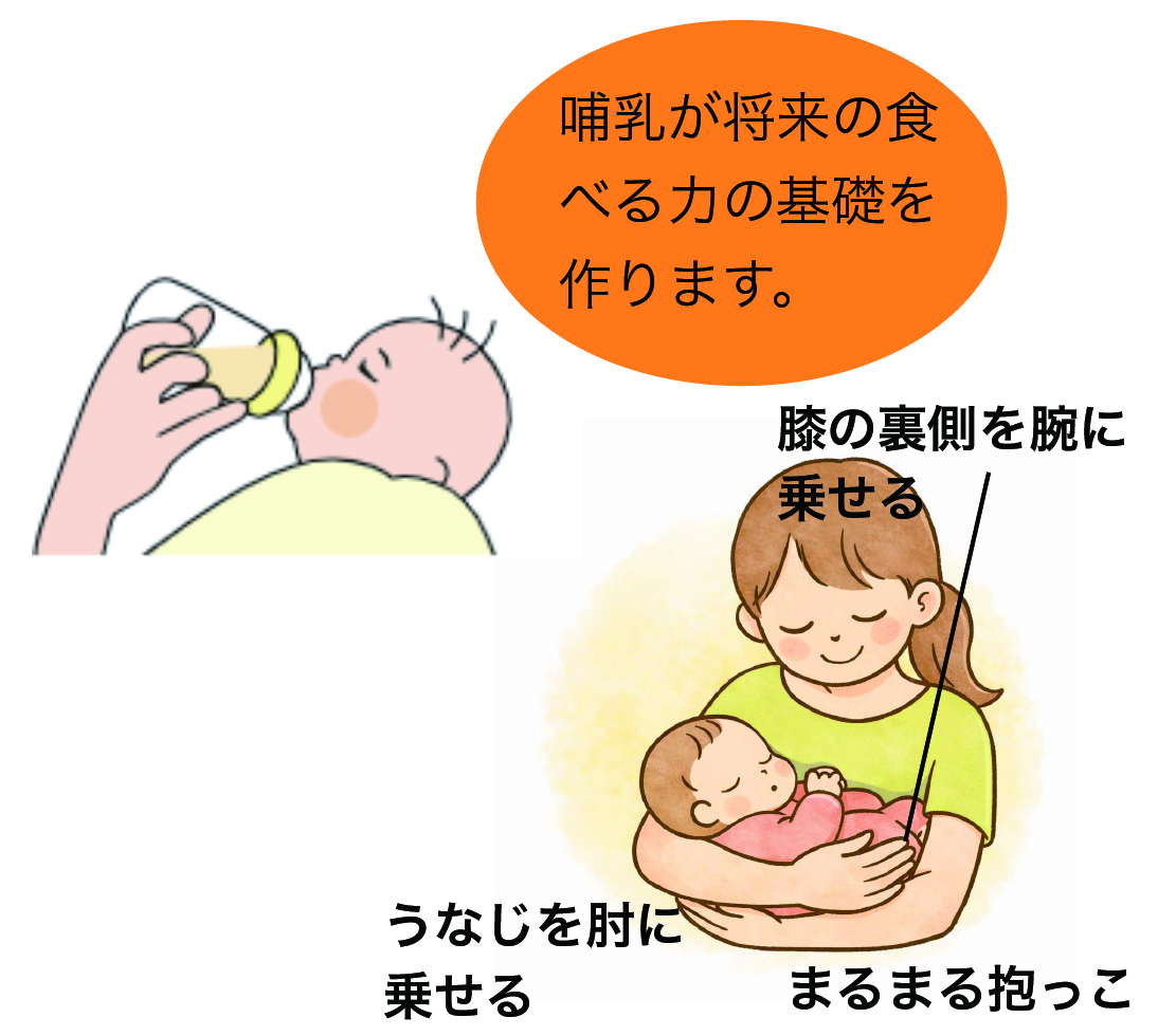※授乳姿勢や抱っこの仕方、赤ちゃんの首の位置がどこにあるかなど、赤ちゃんのお口の筋肉の使い方、お口の育ち方につながる姿勢も大切です。赤ちゃんの頃から、お口の発達を見守りましょう。
